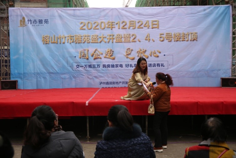 2020年12月24日上午,鑫晟地產(chǎn)公司在竹市雅苑售房部現(xiàn)場隆重舉行項目開盤暨2、4、5號樓封頂活動。豐富多彩的節(jié)目表演、精彩有趣的有獎問答吸引了周邊群眾觀看、參與。 此次活動達(dá)到了很好的宣傳造勢效果,使“國企造,更放心”深入人心。