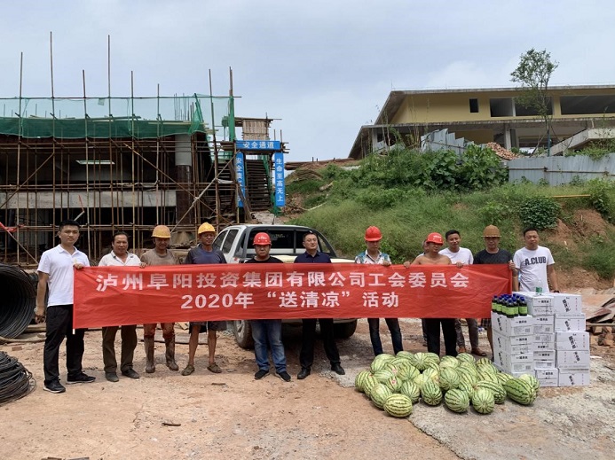 近日,合江持續(xù)高溫,為保障一線人員的身體健康,確保各項(xiàng)生產(chǎn)工作安全有序開展,8月11日,集團(tuán)公司黨委委員、工會(huì)主席袁健,帶領(lǐng)集團(tuán)黨群紀(jì)檢工作部、綜合部先后深入鑫晟學(xué)府、殯儀中心、龍掛山景區(qū)等十多個(gè)項(xiàng)目建設(shè)現(xiàn)場(chǎng),看望慰問奮戰(zhàn)在一線的工作者,為他們送去清涼物資和關(guān)心關(guān)愛。