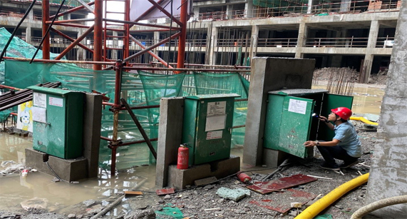 2020年7月16日傍晚,合江縣突發(fā)大暴雨,為防范安全隱患,我司積極組織施工單位和監(jiān)理單位展開安全排查,重點(diǎn)排查了塔吊、施工電梯、電箱、基坑、地下室等易積水的高危地點(diǎn),確保安全施工。