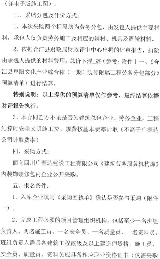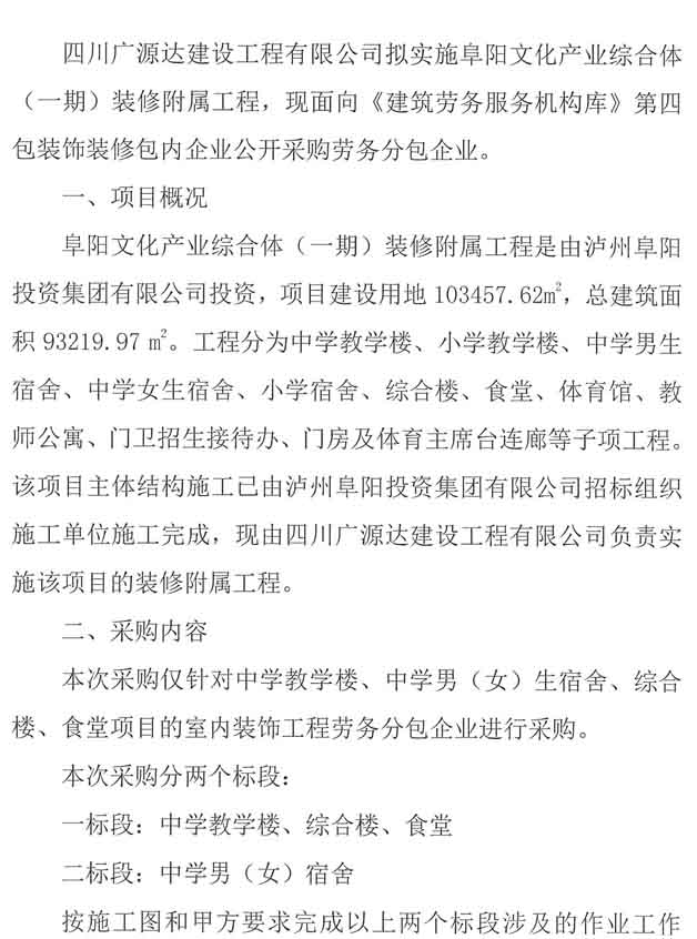 阜陽文化產業(yè)綜合體(一期)裝修附屬工程勞務分包企業(yè)采購公告.docx