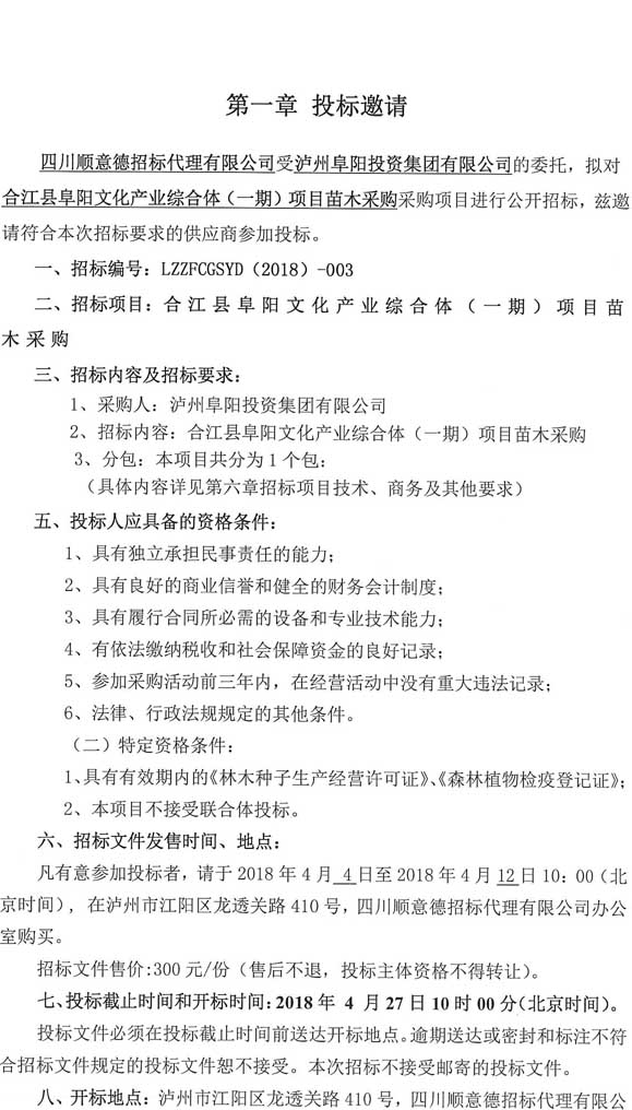 投標(biāo)邀請(qǐng):合江縣阜陽文化產(chǎn)業(yè)綜合體(一期)項(xiàng)目苗木采購