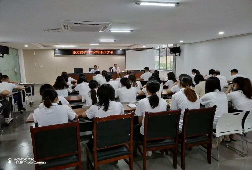 2022 年 6 月 27 日上午,瀘州康力健醫(yī)療投資有限公司 在 公 司 大 會 議 室 舉 行 2022 年 職 工 大 會 。 公 司 董 事 長 胡 天 華 、 總經理鄭世來出席了大會, 并在大會上發(fā)表重要講話。 本次 大會分為上半年工作總結、 下半年工作計劃及安全生產會議 三個部分, 旨在總結公司上半年的發(fā)展情況, 完善下半年的 發(fā)展計劃及 “ 對標找差、提能增效 ” 活動開展情況,鄭世來總 經理提出 : 一是要理清業(yè)務工作思路,對目標任務高標準嚴 要求的貫徹執(zhí)行;二是要強化落實 “ 兩個責任 ” ,抓好黨的建 設和企業(yè)管理。 將組織相關人員不定期對公司各崗位履職情 況進行檢查監(jiān)督, 發(fā)現(xiàn)問題, 立即指出督促整改到位, 建立 健全各項規(guī)章制度, 以制度管人, 推動公司各職能部門履職 盡責, 提升公司盈利能力和盈利水平, 并對廉潔從業(yè)及安全 生產管理制度進行了的宣講。